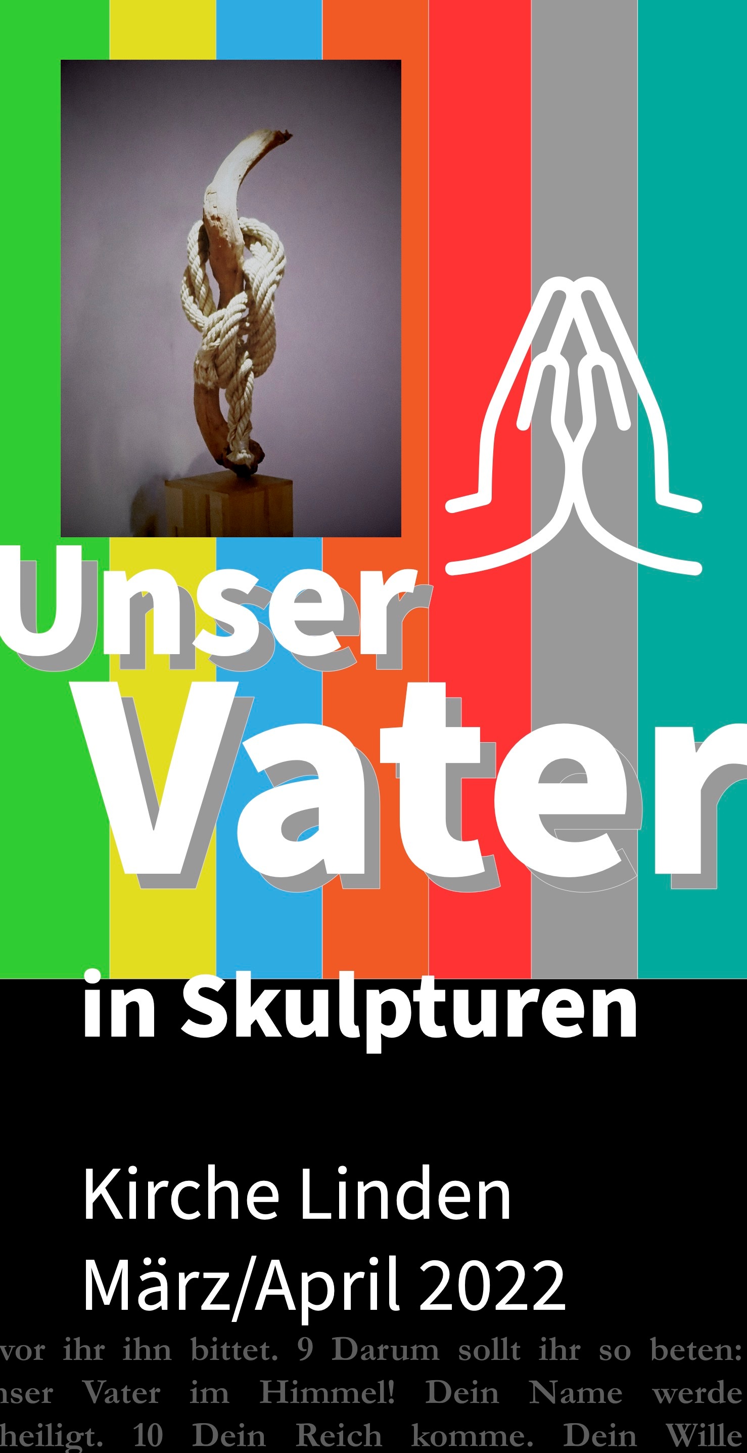 Die Skulpturen und Texte in unserer Kirche laden ab Mo 7. März 2022 ein, Zeit mit dem Unser Vater zu verbringen. Die Kirche Linden ist rund um die Uhr geöffnet. Besucher können die Posten selbständig begehen und sind eingeladen, allein oder gemeinsam zu beten oder auch zu singen. Zu jeder Bitte sind auch Liedvorschläge vorgesehen. Die Lieder laufen im Hintergrund, eingespielt von unserer Organistin Ruth Seifert.